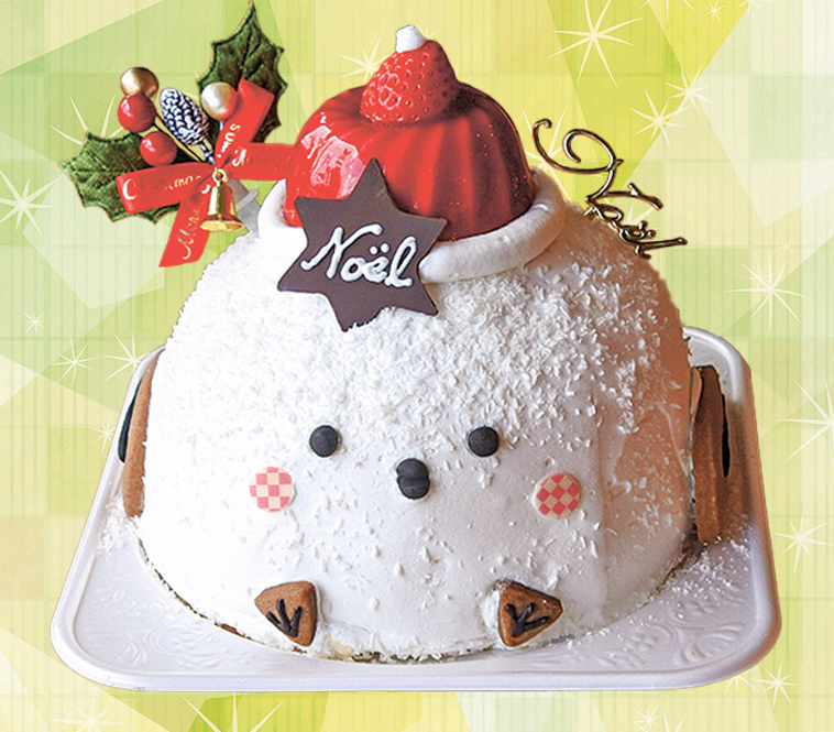 スポンジケーキの上に道産チーズを使っ たスフレを重ね、生クリームでデコレーショ ン。ココナッツを振り、ラズベリームースの帽 子を乗せた愛らしい姿に心躍る一品です。