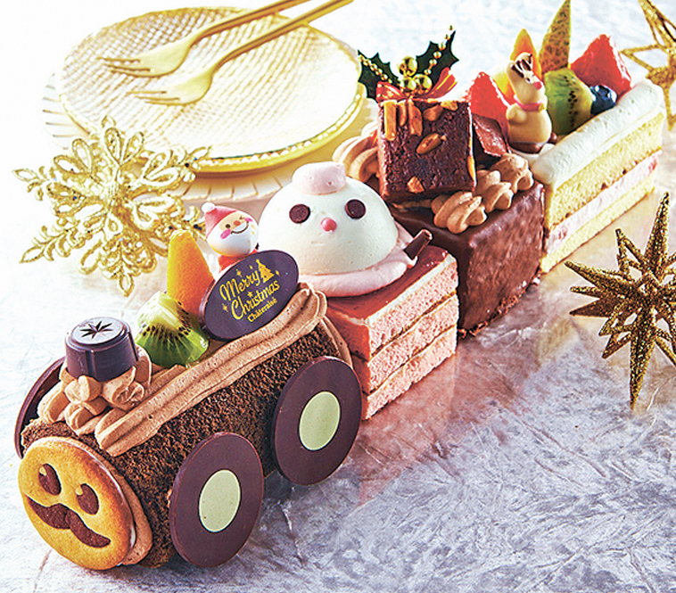 ロールケーキ、苺のキューブケーキなどの4種類のケーキを組み合わせて、フルーツやホイップクリームなどで飾り付け。電車をイメージした顔がキュート♡数量限定。予約はお早めに。