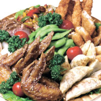 レタスや水菜、トマトなどのフレッシュな生野菜と、バター醤油が香るしめじにヤングコーン。ガーリック風味の枝豆もいいアクセントに。真ん中にはチキンの入ったベジラップが入り、味もボリュームも満点♪