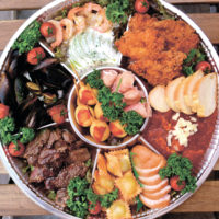ムール貝バターガーリック風味、帆立バターソテー、蟹甲羅焼き、チーズパイ、海老フリッター、鮭南蛮漬け、海老姿煮、サラミ風ベーコン他