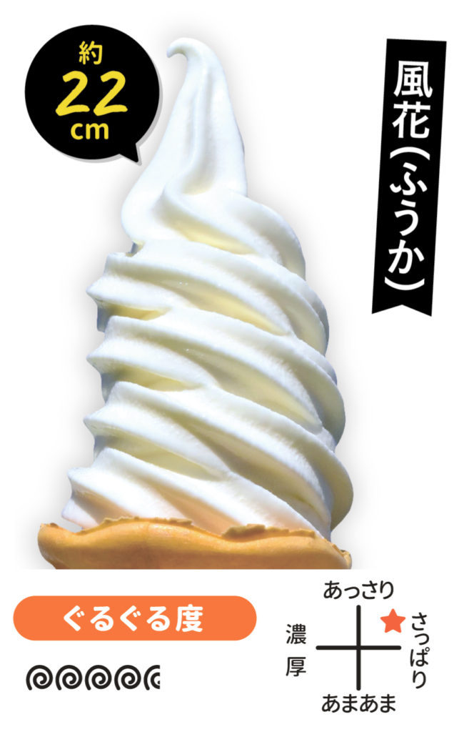 口あたりがなめらかでミルク感たっぷりのナチュラルソフト。ちょっと食べたい人にはミニソフト(330円)もあり。ワッフルコーンソフト(380円・ミニ330円)もあります。オープンガーデンを眺めながら食べるソフトは格別です!
