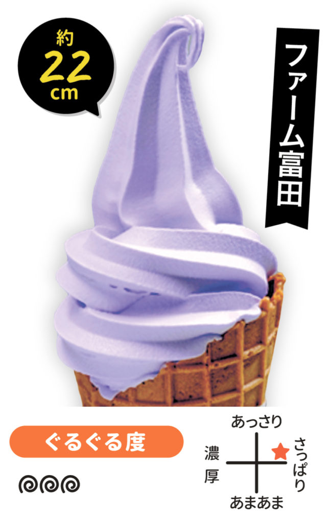 天然のラベンダーエキスが入った、清楚で気品高い薄紫色のソフト。華やかな香りとすっきりとした味わいで、暑い日にもおいしく食べられるさわやかさが魅力です。園内複数の売店で販売しています。