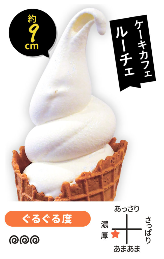 美瑛産牛乳に、バニラビーンズのペーストを合わせて練り上げました。なめらかで濃厚な舌触りに、甘い香りが華を添えます。このほか、ババロアにソフトをトッピングした中々ない組み合わせのメニューもあり。
