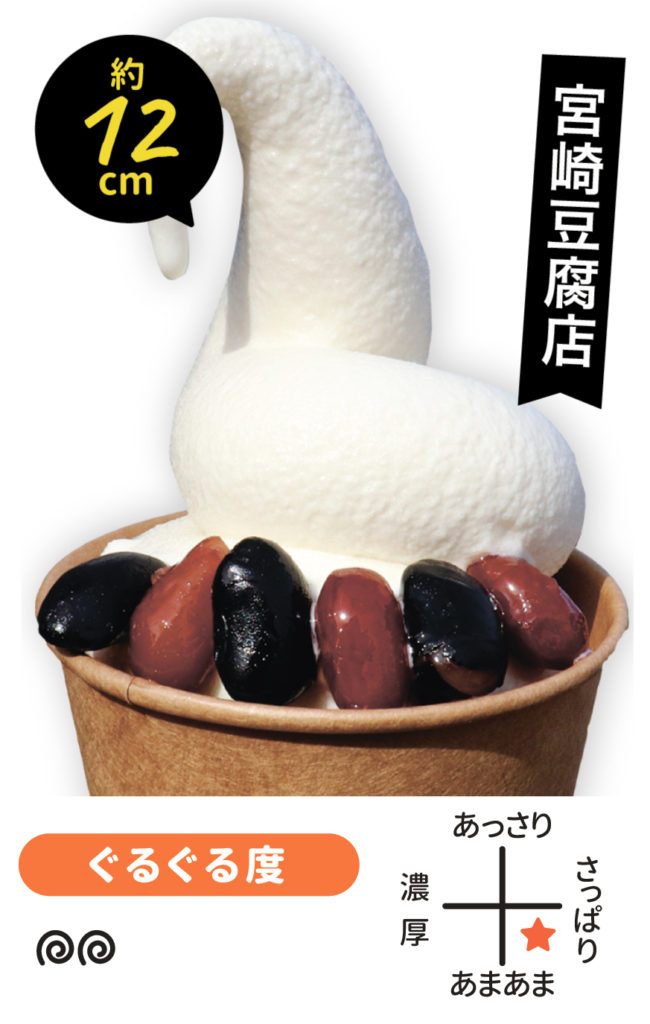 ジャパチーズのソフトクリームに東川産大豆100%の豆乳をミックス。ほんのり感じる豆乳の優しい風味と、トッピングされた煮豆が相性抜群です。ぷっくりとした形がかわいらしくて、ついつい写真を撮りたくなっちゃう♡