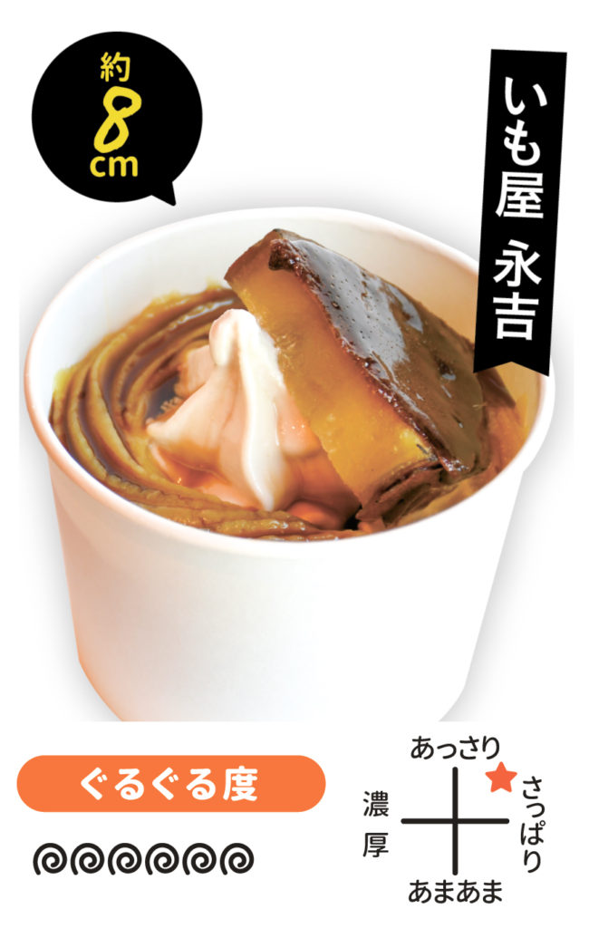 豊富町の牛乳と、ネグロス島マスコバド糖を練り上げたソフトに、お店自慢の熟成焼き芋ペーストをたっぷり搾りました。カリカリの艶やかなアメ掛け焼き芋と自家製黒蜜をトッピングして完成。カップにたっぷり召し上がれ。