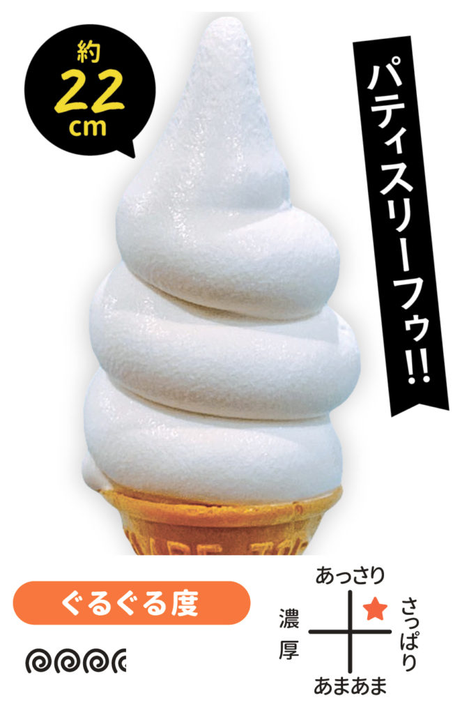ふわモコ系の丸っこいフォルムがかわいい。買ったばかりのフゥさんのケーキや焼き菓子をおうちまで待ちきれない人、帰り道にこのソフトをどうぞ。あっさりとしたシンプルな味わいで、ぺろっと食べきれちゃいます。