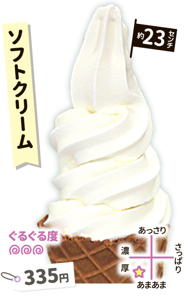 スタンダードなソフトのほか、洋菓子店らしいスイーツ入りのカップソフトもあり。トッピングソースもありますよ♪