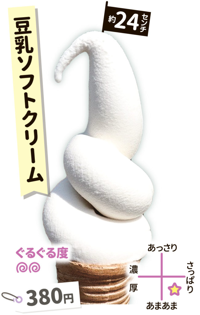 東川産大豆100%の豆乳と、ジャパチーズのソフトの夢の競演。卵不使用の無添加で、去年よりもさらに強くなった豆の風味を存分に味わって♪