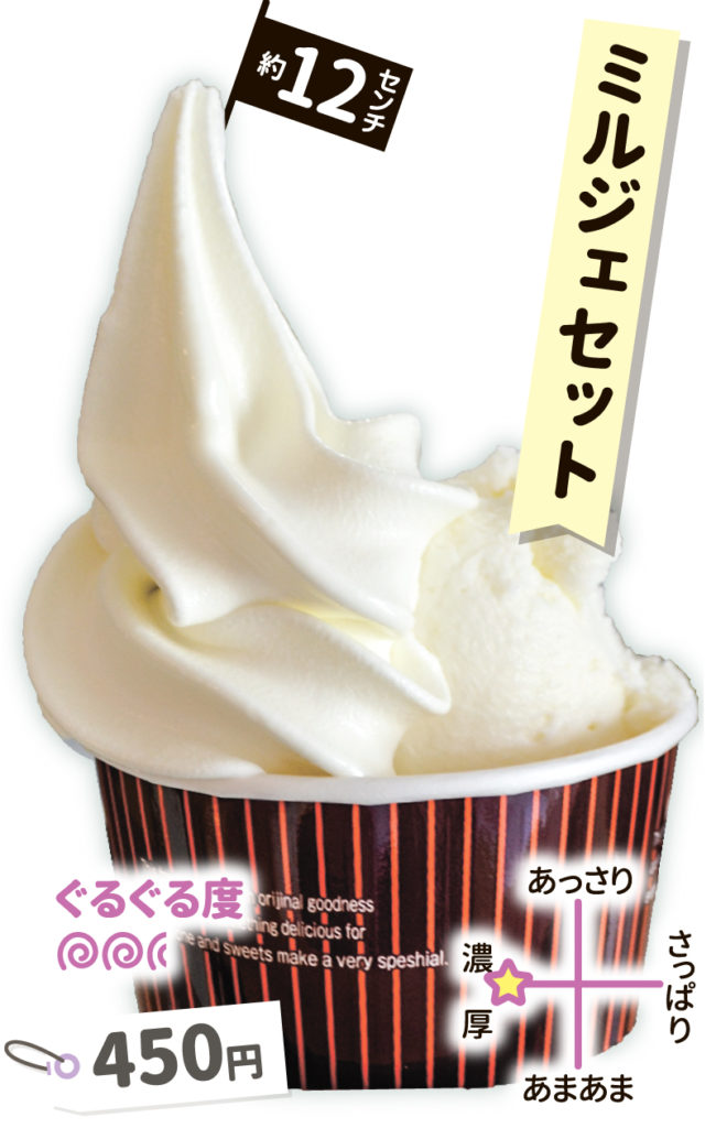 地元の「美瑛プレミアム牛乳」を使ったオリジナルジェラートとソフトが両方食べられる欲張りなセットです。濃厚なのに後味はさっぱり。