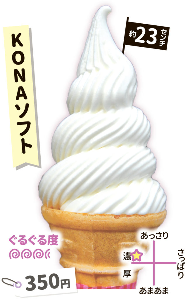 美瑛ファームの生乳をイタリア製マシン「カルピジャーニ」で練り上げた滑らかな舌触り。ケーキに絞った生クリームのような見た目が「映え」間違いなし!