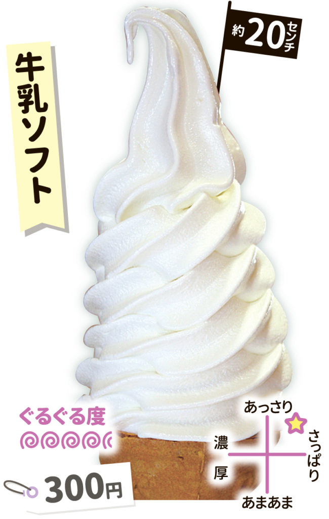 おこっぺ産の牛乳を使用した、きめの細かい滑らかな舌触りでアーモンドフレアコーンの香ばしさと相性◎。ログハウス調の建物が目印です。