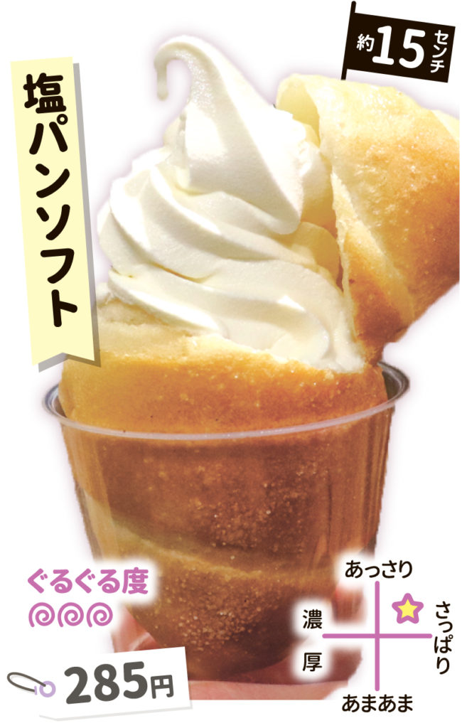 1番人気のフランスパンとソフトを合わせたベーカリーならではの一品。甘さとしょっぱさで美味しさもエンドレス!メロンパンソフトもあり。