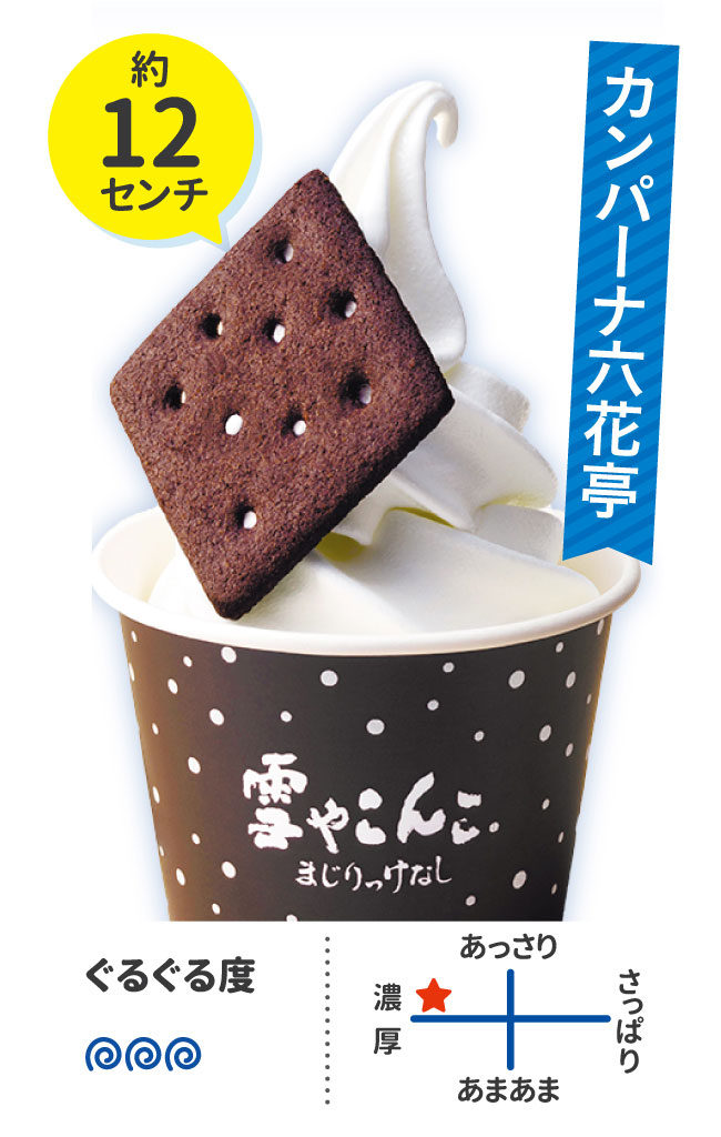六花亭の焼菓子・雪やこんこのビスケットを添えて提供。香料などはいっさい使わず「まじりっけなし」の名の通り、シンプルな5種類の原材料だけでつくる牛乳の素直な味わいを感じられます。