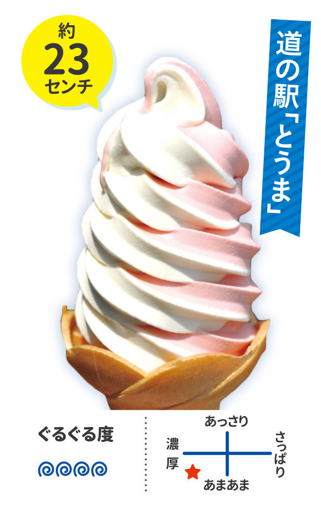 特産品の「でんすけすいか」にちなんだご当地ソフト。夏にはカットすいかも販売しているので、豪華にトッピングして独自のアレンジを加えてみるのもオススメ♪11月半ばまでの販売です。