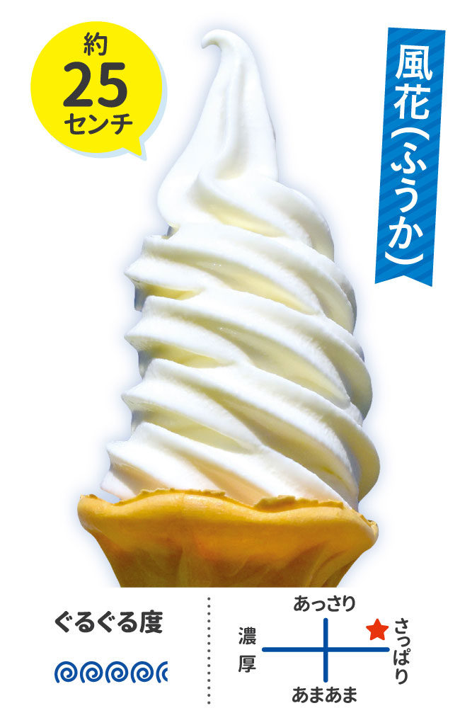 無添加でなめらかなソフトはミルク感たっぷりで食感もやわらか。2.5巻のミニソフト(280円)のほか、ワッフルコーンやサンデー(各330円)もあり、いろいろ選べるラインナップが嬉しいですね♪
