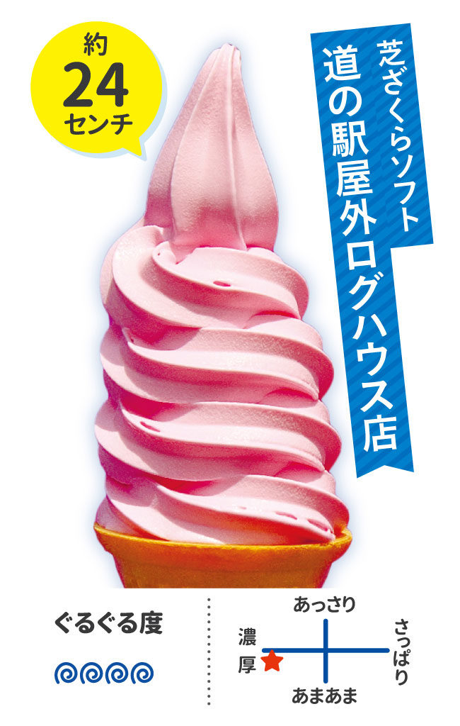 鮮やかなピンク色をした見た目の期待を裏切らず、芝ざくらの香りが口いっぱいに広がります。ふんわりとほどよい甘さがクセになりそう。芝ざくら開花期間中は「芝ざくら滝上公園」でも限定販売。