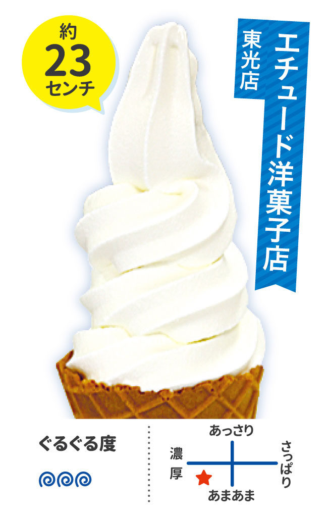 スタンダードなソフトクリームのほか、イチゴソースなどのトッピングも各種揃います。洋菓子店ならではのスイーツ入りカップソフトも要チェック。販売は東光店のみなのでお間違いなく!