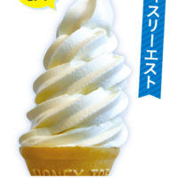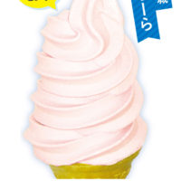 日高の農家から仕入れる牛乳と生クリームで作るオリジナルソフト。ソースは全5種で写真はいちご(+50円)。住宅街の中に佇む大きなソフトクリームのオブジェが目印です。可愛らしい店内にも注目!